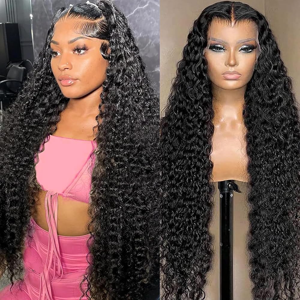 30 Inch Deep Wave Lace Front Wigs Human Hair 13x6 HD Transparent Lace Frontal Curly Wigs for Women Wet and Wavy Glueless Wigs Pre Plucked with Baby Hair 180 Density Brazilian Virgin Hair Natural Black
