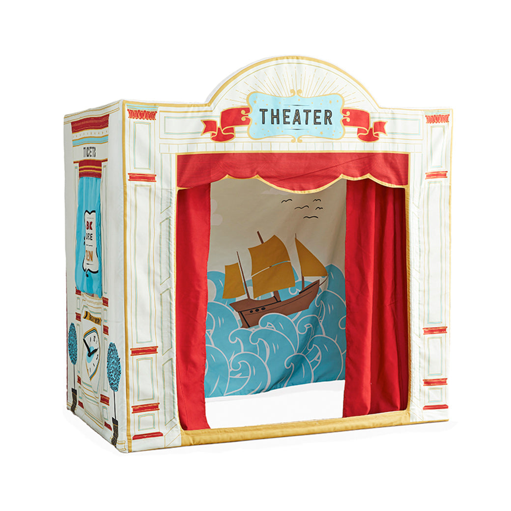 Whether your little one is an aspiring actor, singer, or dancer, they will love our Play House Playhouse. Easy set up and they are ready to change out the 4 included background scenes. Includes an oversized plush microphone and lots of details with clock to set the time of the performance, or write in the title of the play on the chalk cloth window. Enter laughing!!