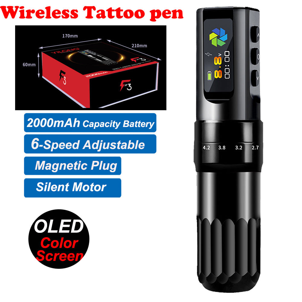 Black Wireless Tattoo Pen Rotary Machine Adjustable Stroke Gun OLED Screen Fast charge