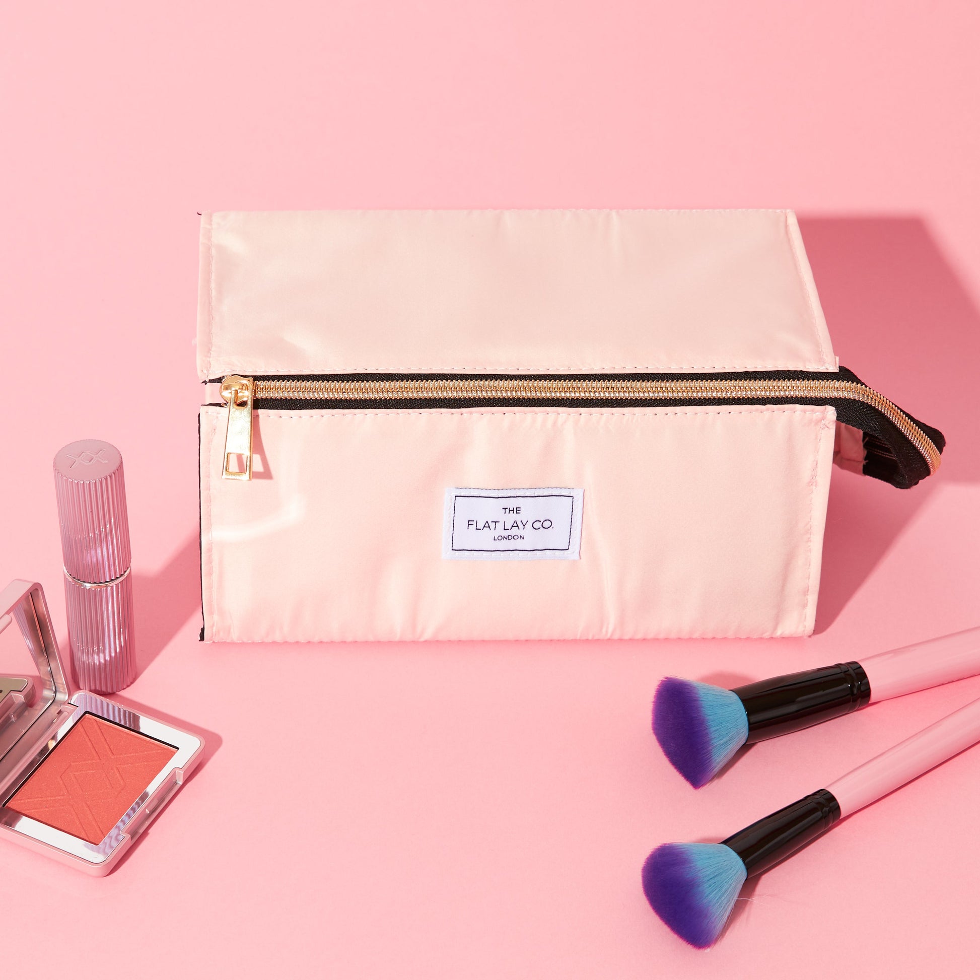 Blush Pink Open Flat Makeup Box Bag and Tray