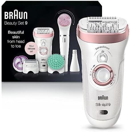 Braun Epilator Silk-épil 9 9-985, Facial Hair Removal for Women, Hair Removal Device, Shaver, Cordless, Rechargeable, Wet & Dry, Facial Cleansing Brush