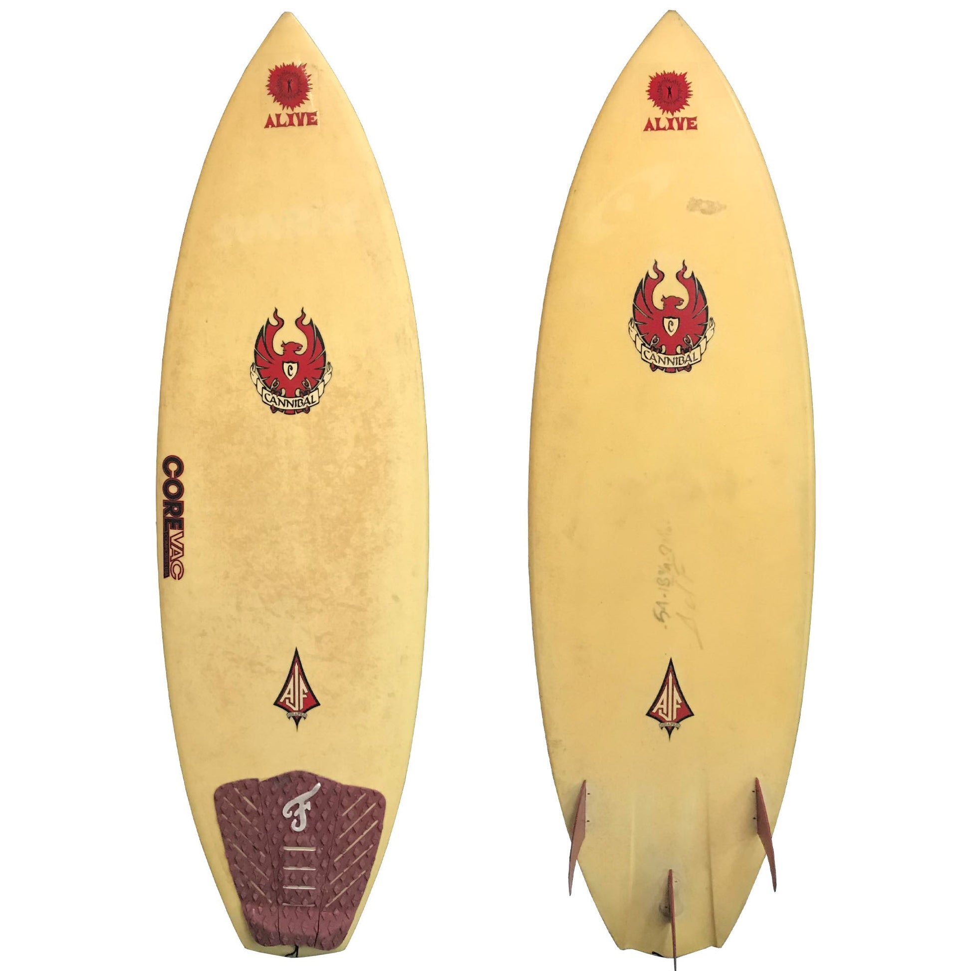 Cannibal Used Surfboard Available Now at the Surf Station! This board is in fair used condition, there is a lot of discoloration on the board overall as can be seen in the photos. There is a fair amount of cracking around the fin boxes, mostly around the center fin. This damage would likely need some attention before this board is entirely water tight. Comes as a 3-fin FCS I setup, fins are included.