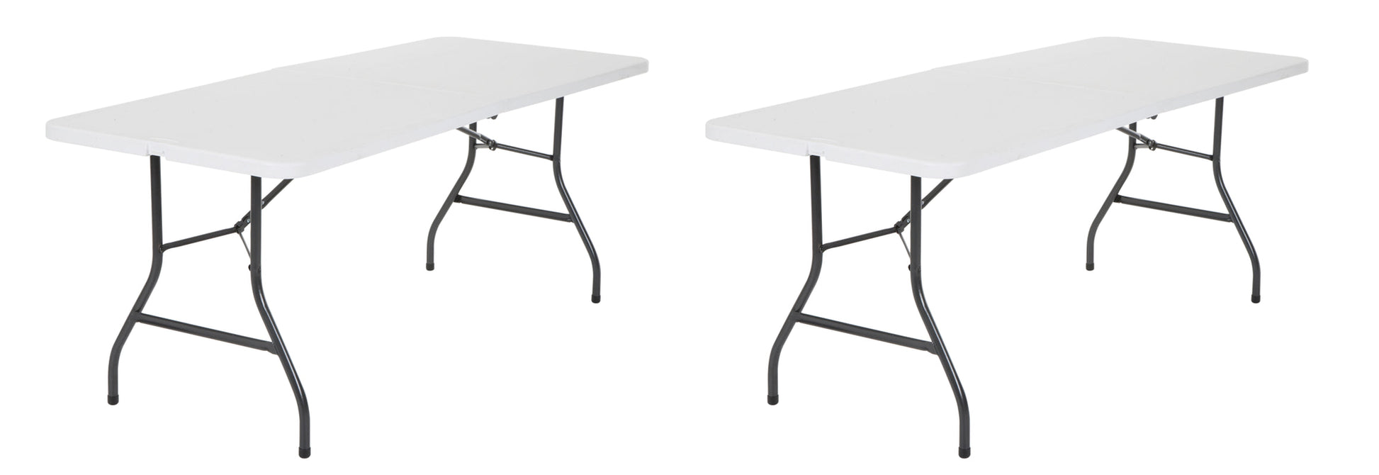 COSCO Deluxe 6' Fold-in-Half Blow Molded Folding Table, White, 2-pack: