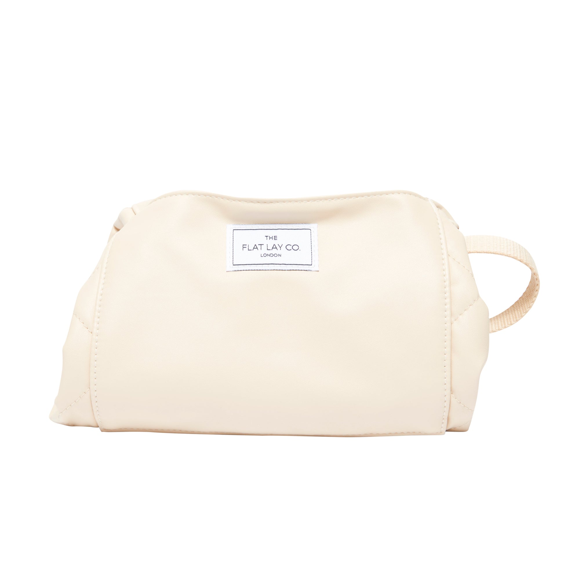 Monochrome Cream Leather Full Size Flat Lay Makeup Bag