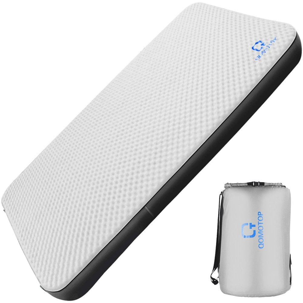 Ultra Comfortable Side Sleep Friendly 4 Inches Thick Queen Size Sleeping Pad If you prefer a family camping or a car camping this mattress will fit you well. Not big package is easy to store and the super comfortable mattress will give you a wonderful experience of sleep! Waterproof & Low Maintenance The top and bottom of the QOMOTOP Self-Inflating Air Mattress are made of different materials, the top is soft while the bottom is wear-resistant. What inside the mattress is PU foam. Perfect for every situation. The R-Value of this mattress is 9.5 so that it can keep you warm! It's easy to clean. Patterned Double-way Valve The valve of the cushion can be rotated, and there are two modes: inflation and deflation. When rolling up the mat, the air valve should be adjusted to the deflation mode. In this mode, the air will only overflow from the mat and the mattress cannot be inflated. On the contrary when you want to inflate the mattress, the air valve should be adjusted to the inflation mode. Easy Storage & Easy Carry Packing Size: 30"×8"×8" Weight: 13.6 lbs