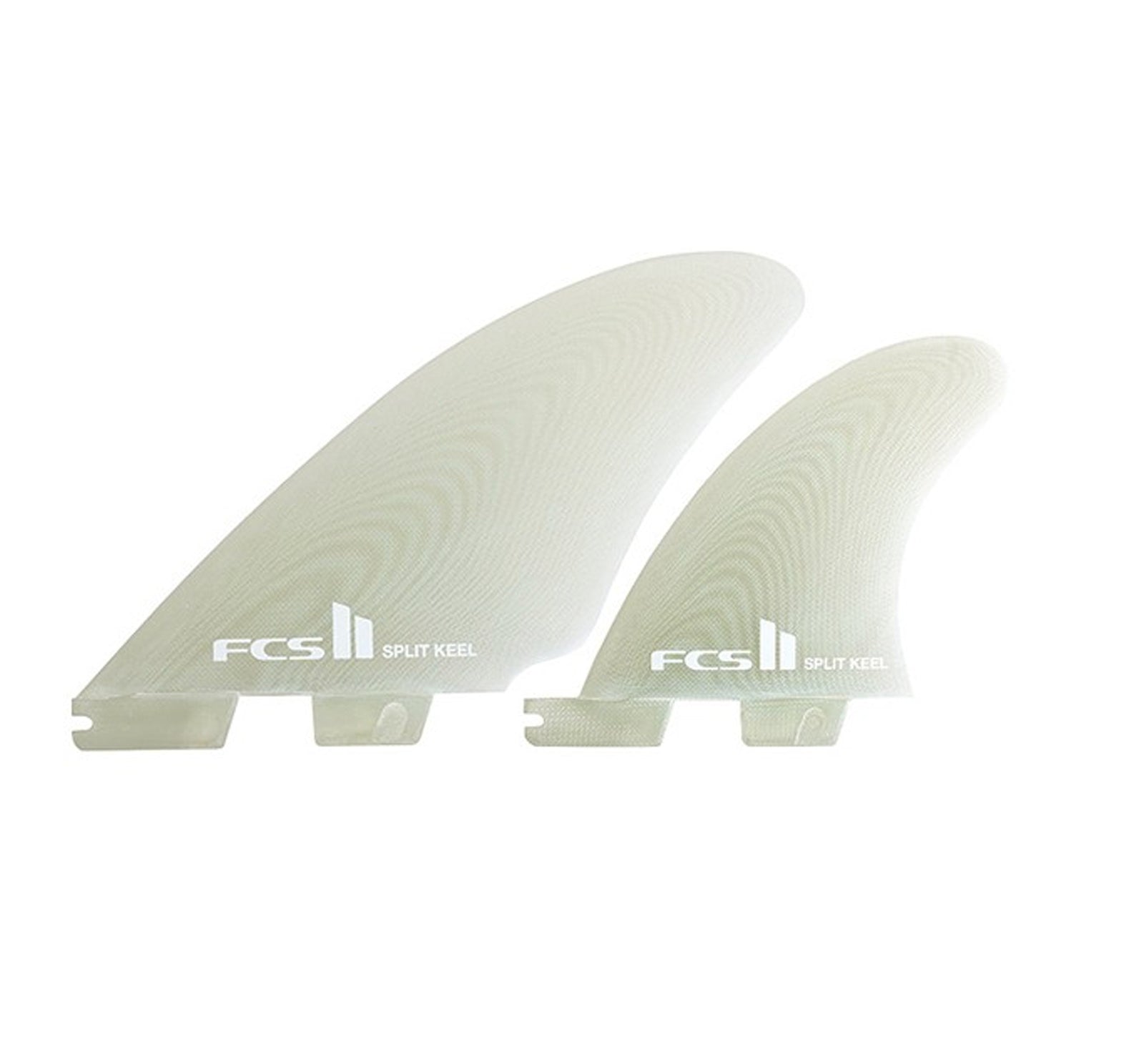The FCS II Split Keel PG Quad Fin Set is recommended for all board types including modern fish and hybrid models with moderate-to-low rocker.