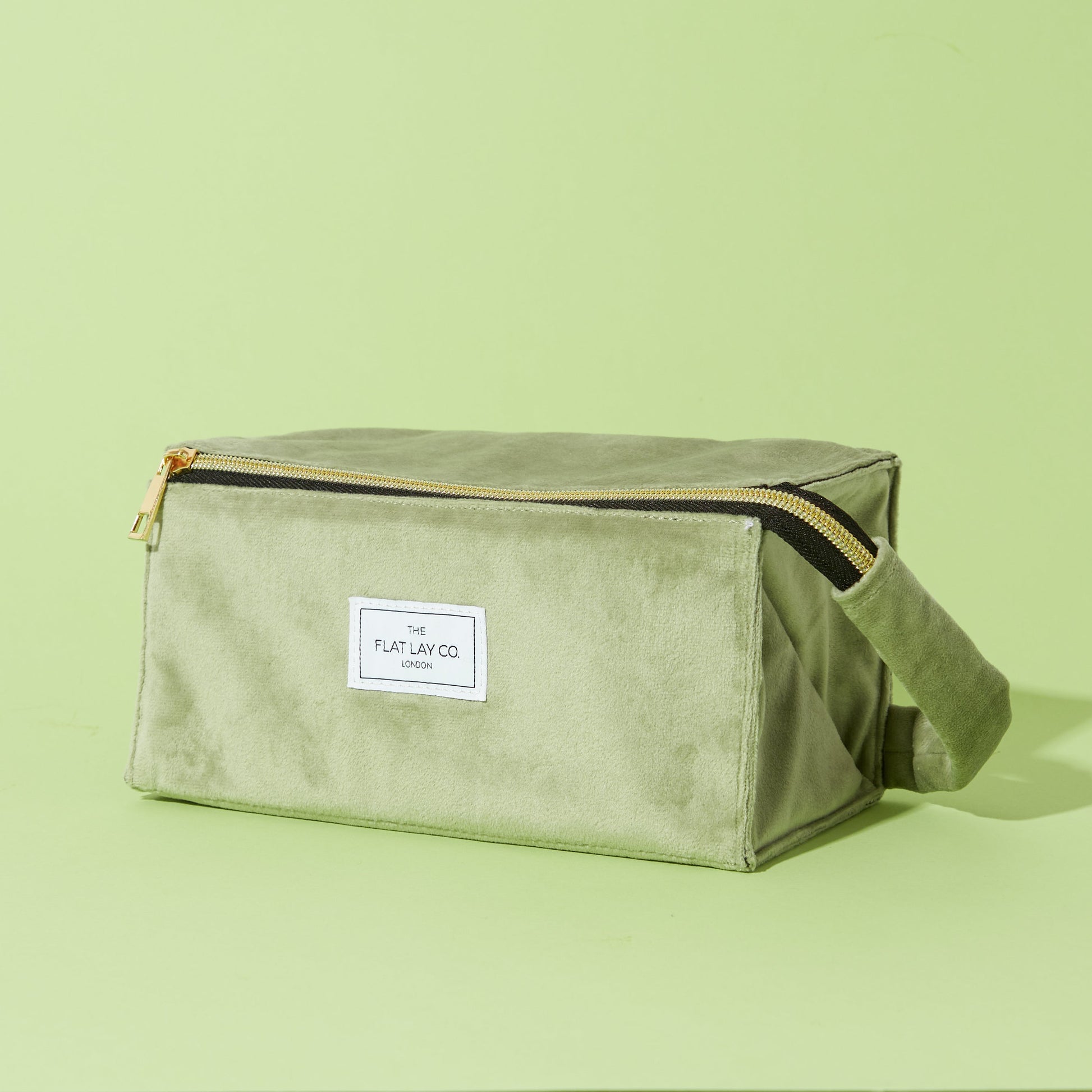Sage Green Velvet Open Flat Makeup Box Bag and Tray
