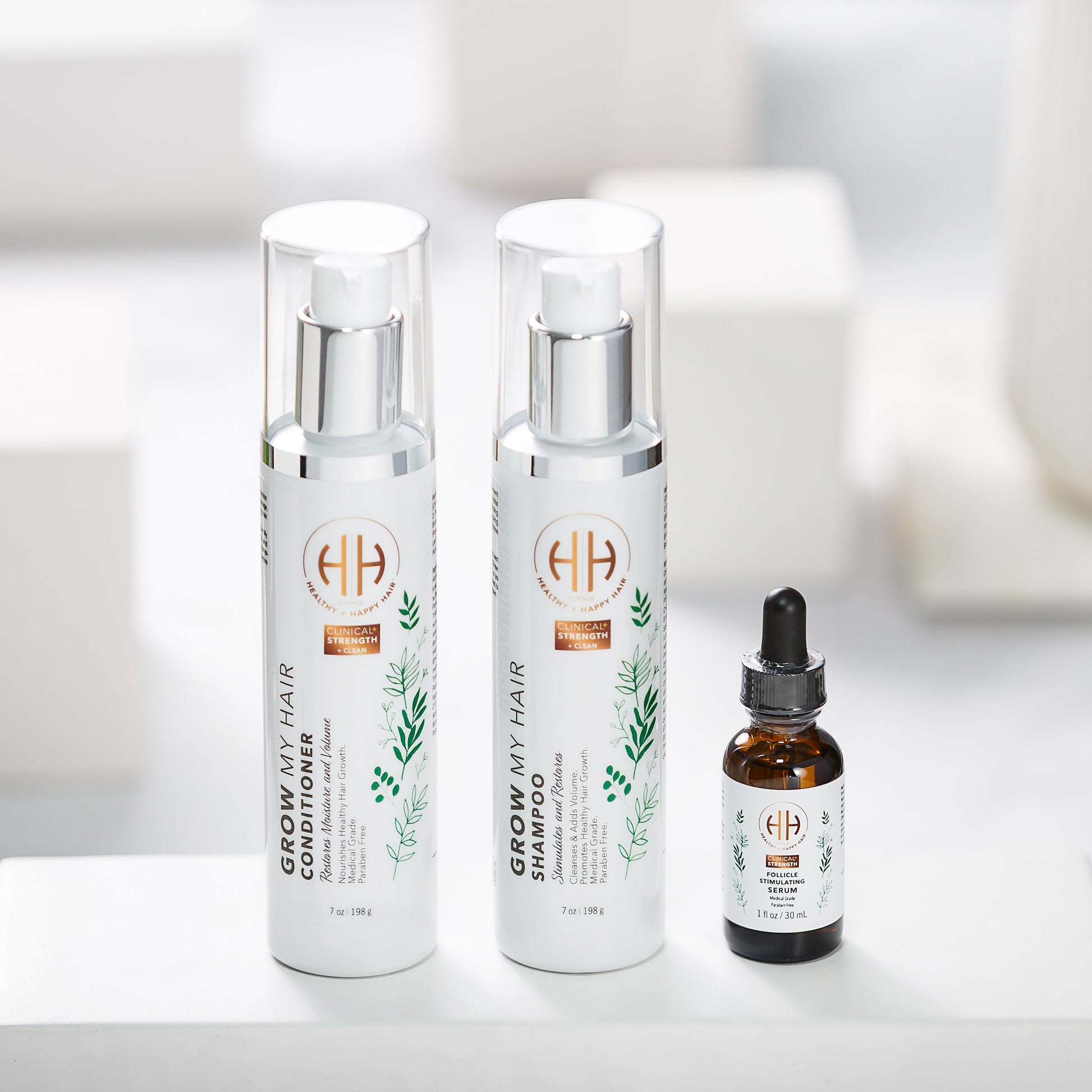 The Grow My Hair Shampoo and Conditioner work together to prep the scalp for the Follicle Stimulating Serum to grow your hair. Perfect for those who want volume and new hair growth.