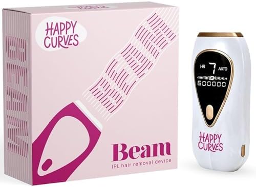 HAPPY CURVES Beam IPL Laser Hair Removal Device - At-Home Permanent Body Hair Removal for Women, Skin-Sensing, LCD Display, Includes UV Sunglasses & Razor
