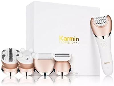 Karmin 5 in1 Wet Dry Epilator for Women Hair Removal, Cordless Electric Shaver, Trimmer, Facial, Body, Arm, Leg Hair Remover, USB Rechargeable, Waterproof, Shave, Exfoliate, Smooth, Buff, Massage