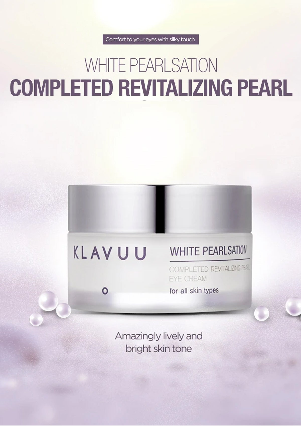 Let the beauty of your youth shine through your eyes. Thanks Bid goodbye to pesky dark circles and unveil the eternal beauty from inside with White Pearlsation Completed Revitalising Pearl Eye Cream from Klavuu.