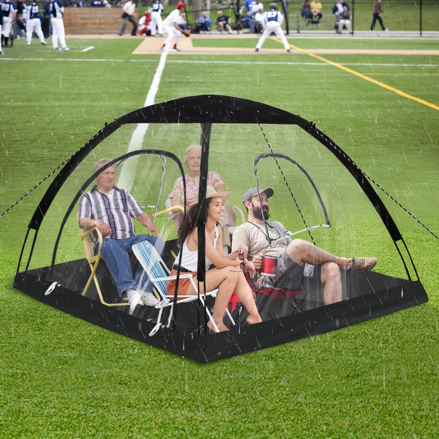 【Comfy Game Watching Experience】This 2-person rain tent provides the perfect shelter for your family, whether it's a bitterly windy day or rain. You can sit inside and watch your children thrive, all while keeping your body temperature in check and without worrying about being exposed to wind or rain. It's also suitable for various occasions, including fishing, photography, and camping.