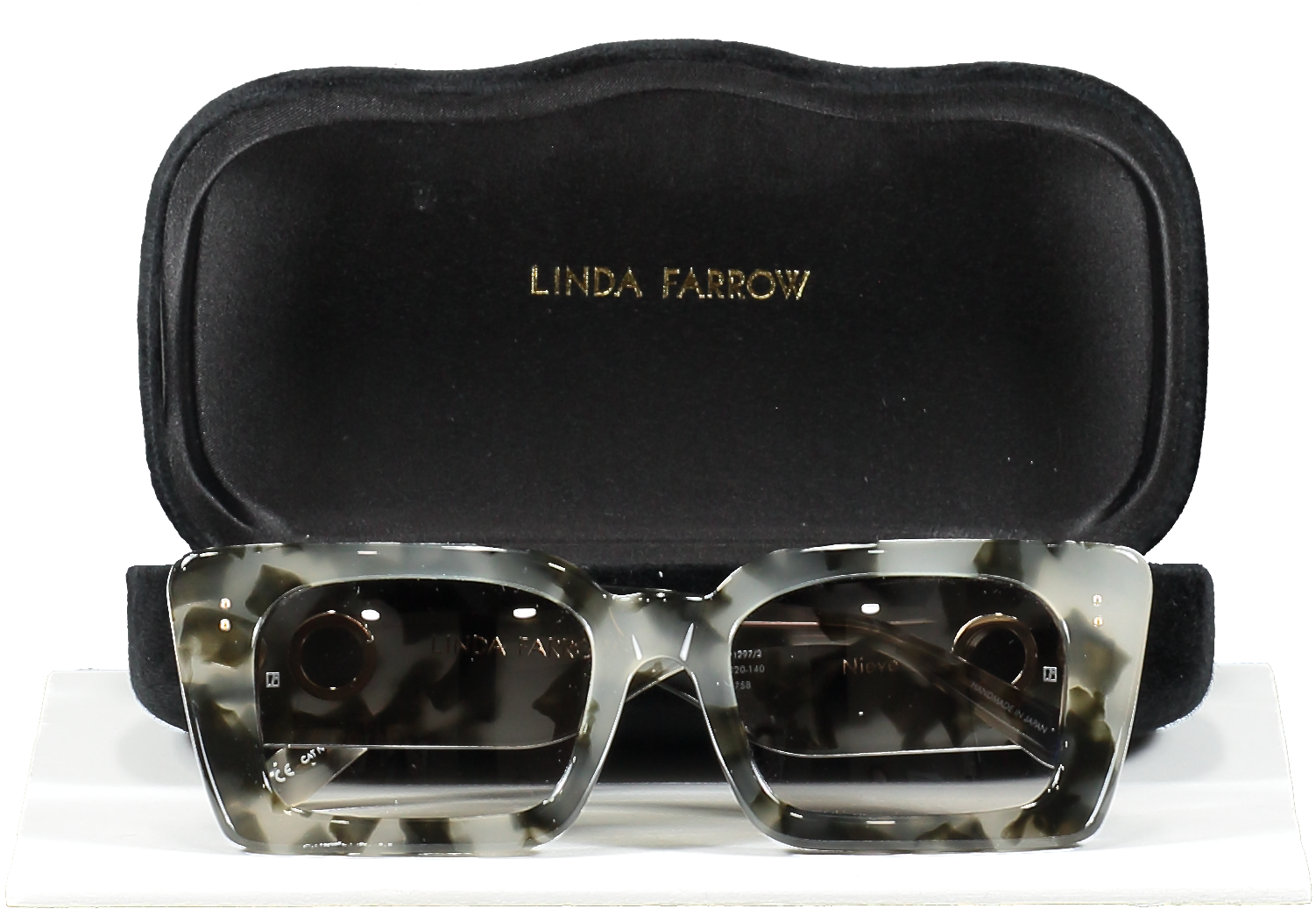 Linda Farrow Nieve Rectangular Sunglasses In Black And Grey Tortoiseshell in case