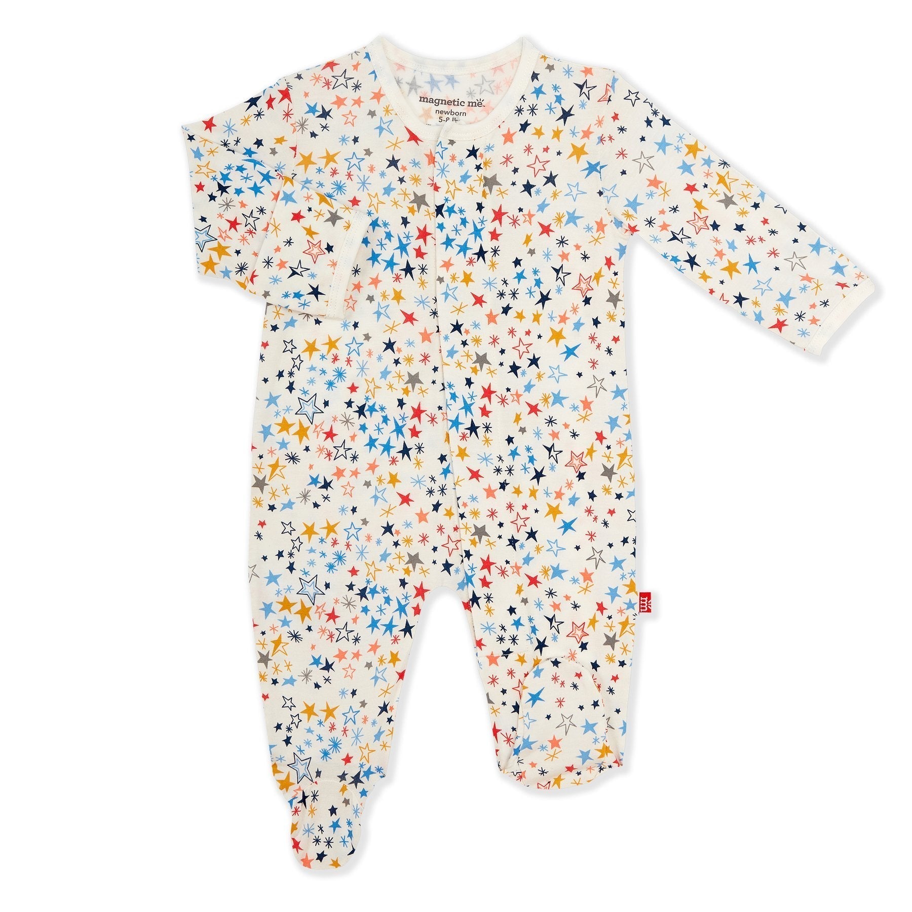 A soft, stylish all-day and all-night wardrobe staple with smart magnetic fasteners that makes changing time painless. With our no over-the-head design, simply open the outfit, insert baby, and BOOM, DONE! - the footie practically closes itself. Machine wash as directed.