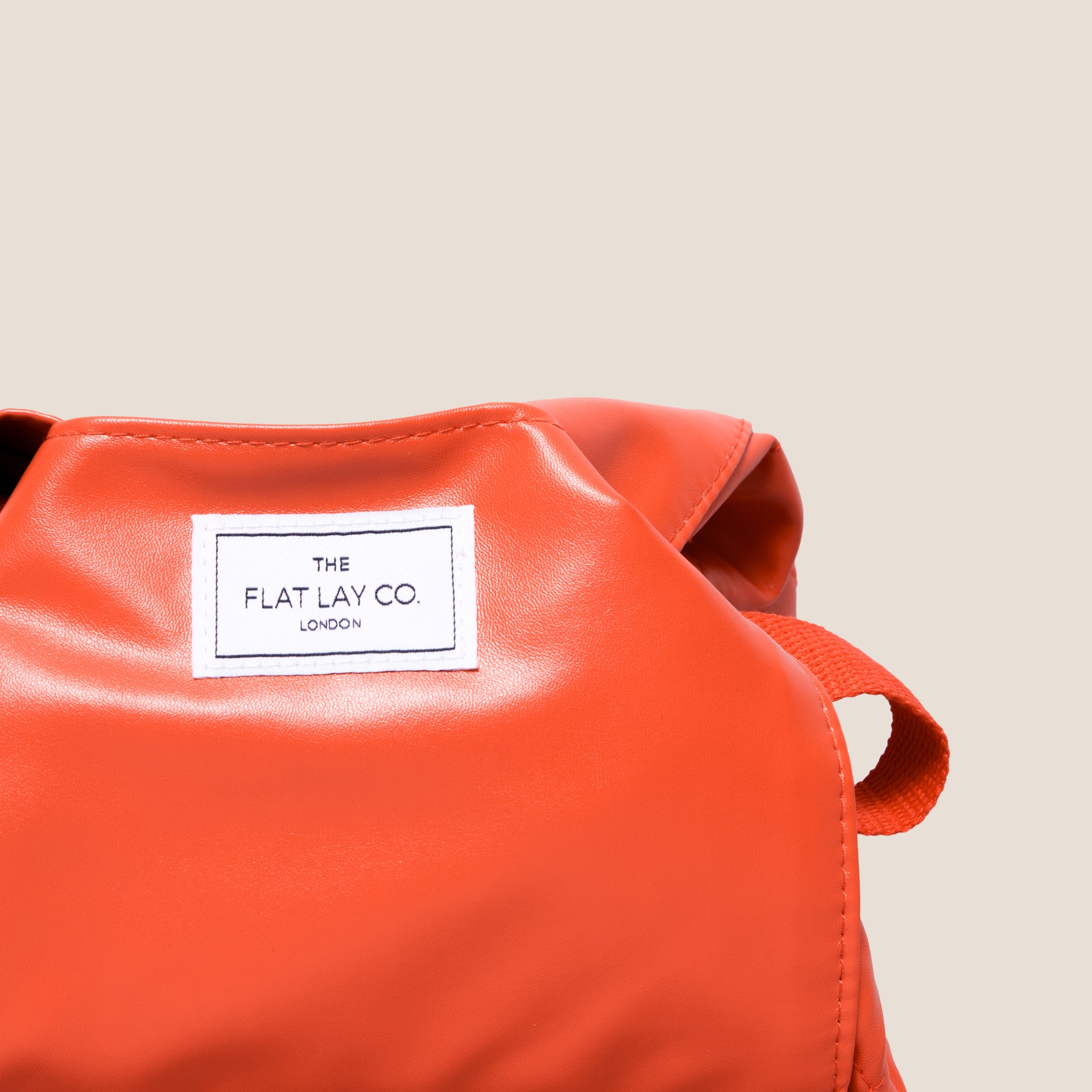Monochrome Orange Leather Full Size Flat Lay Makeup Bag