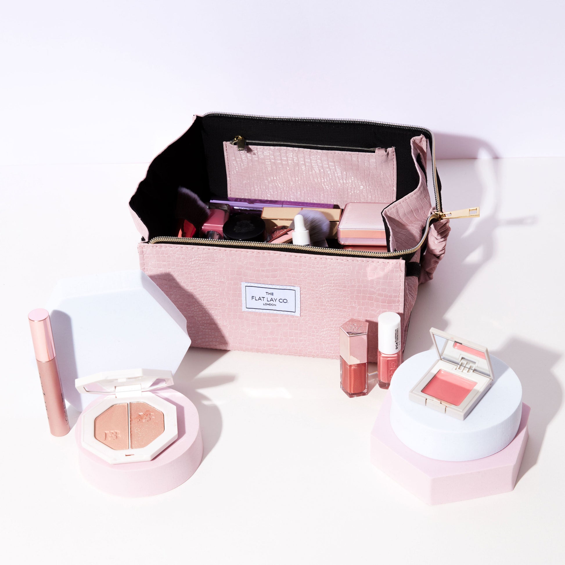 Pink Croc Open Flat Makeup Box Bag and Tray
