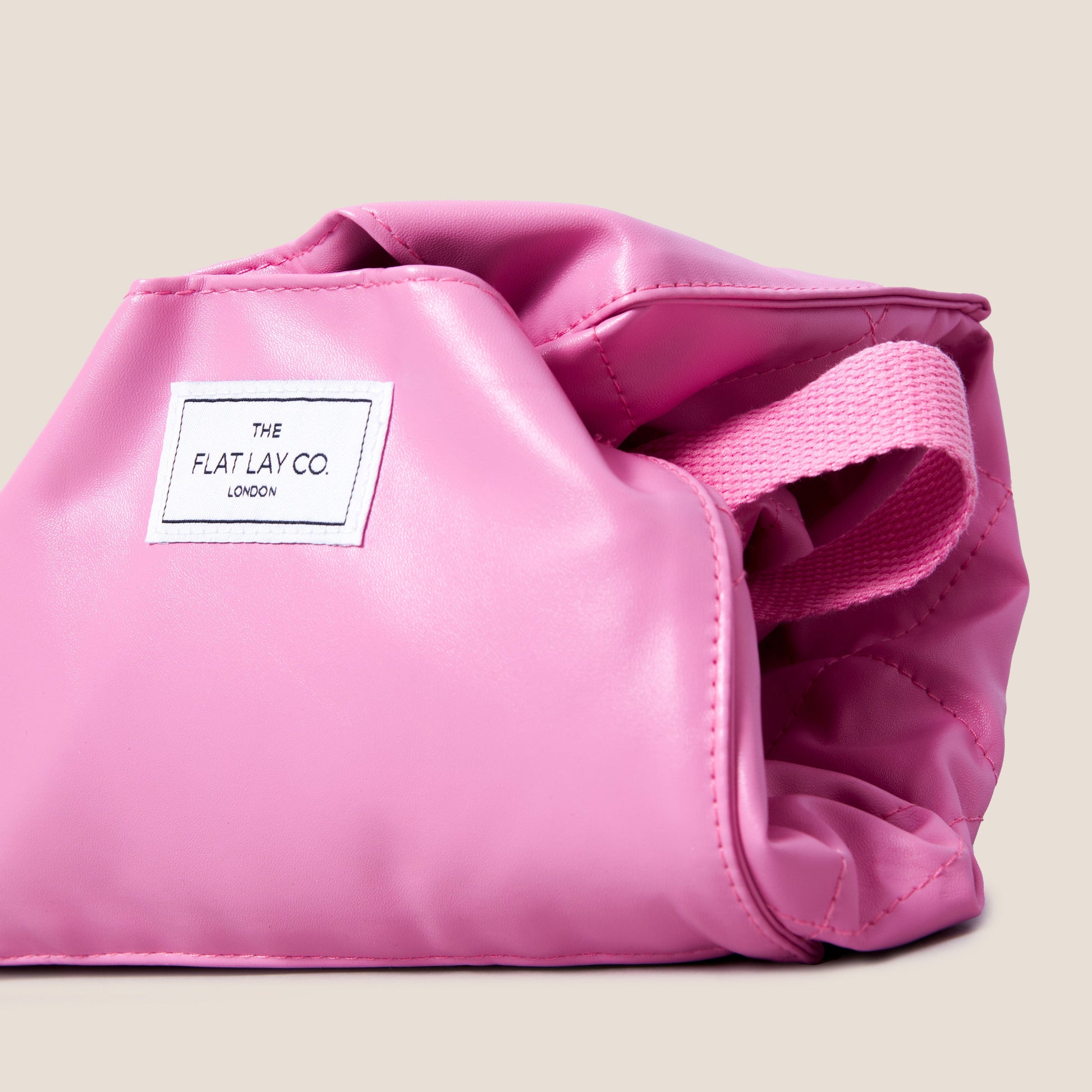 Monochrome Pink Leather Full Size Flat Lay Makeup Bag