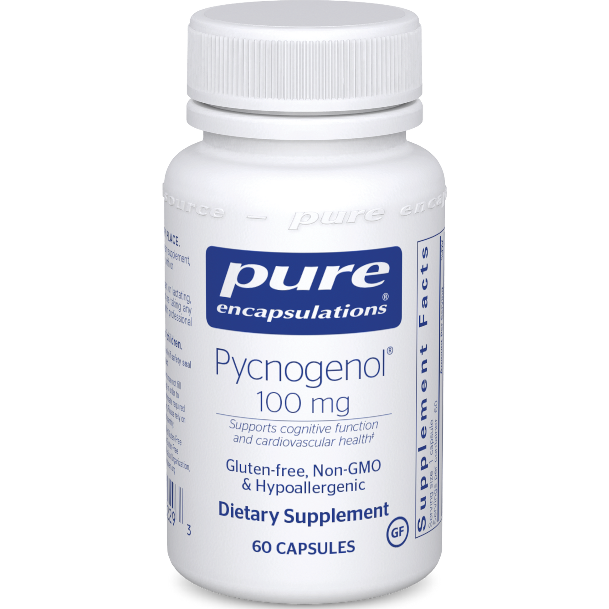 "Pycnogenol" originally denoted all proanthocyanidin extracts, regardless of source. However, it now refers specifically to maritime pine bark. The mixture of proanthocyanidins in pine bark supports vascular endothelial integrity by stabilizing collagenous membranes. It also promotes vascular function by modulating nitric oxide levels. In addition to facilitating vitamin C regeneration and preserving vitamin E, Pycnogenol® is a hydroxyl and superoxide radical scavenger. Collectively, these actions promote the health of blood vessels.*