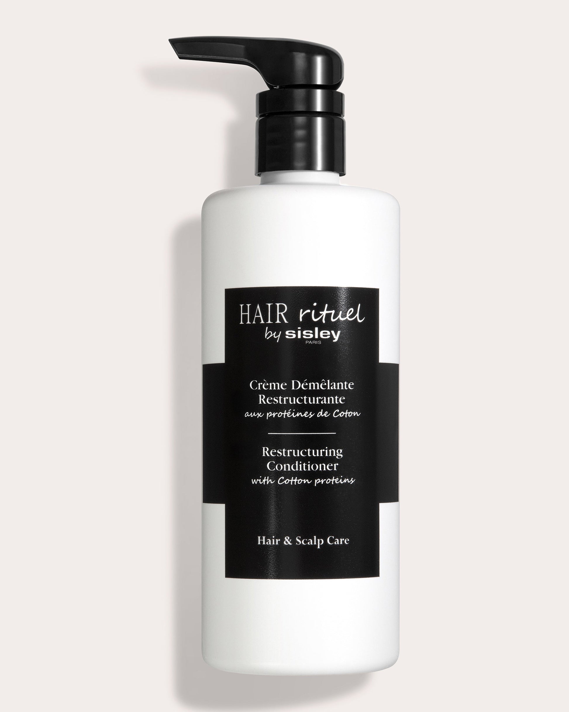 Highly concentrated in restructuring and lipid-replenishing key ingredients, its detangling formula smoothes the cuticles, increases shine and improves resistance. Available in a larger format with a pump. Hair Rituel by Sisley-Paris.