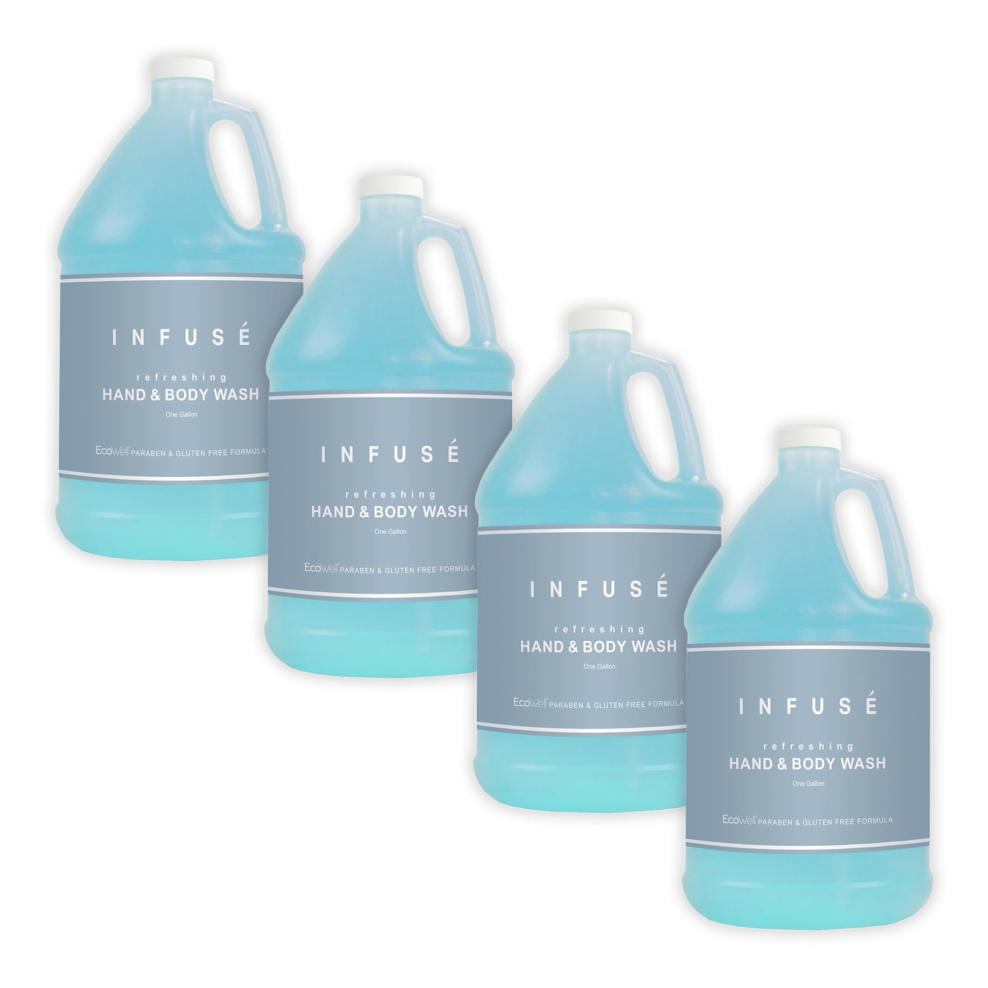- CONTAINS 4 Gallon containers with Infuse formula specifically designed to REFILL Wall-Mounted or Stand-Alone DISPENSERS.