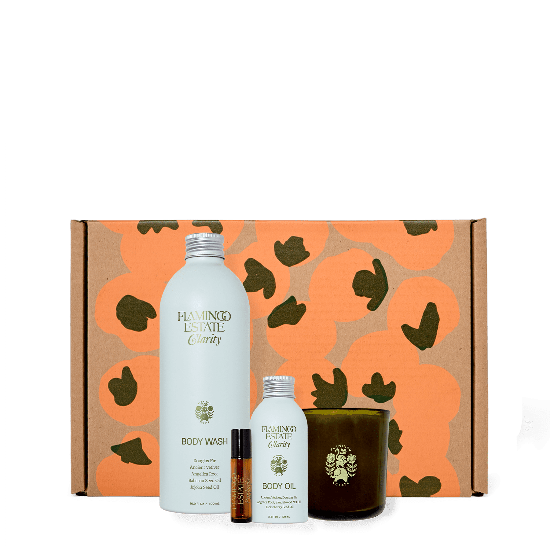 Featuring four tools for daily Clarity: Body Oil, Fragrance Oil, Candle, and Body Wash with our Recyclable Pump.