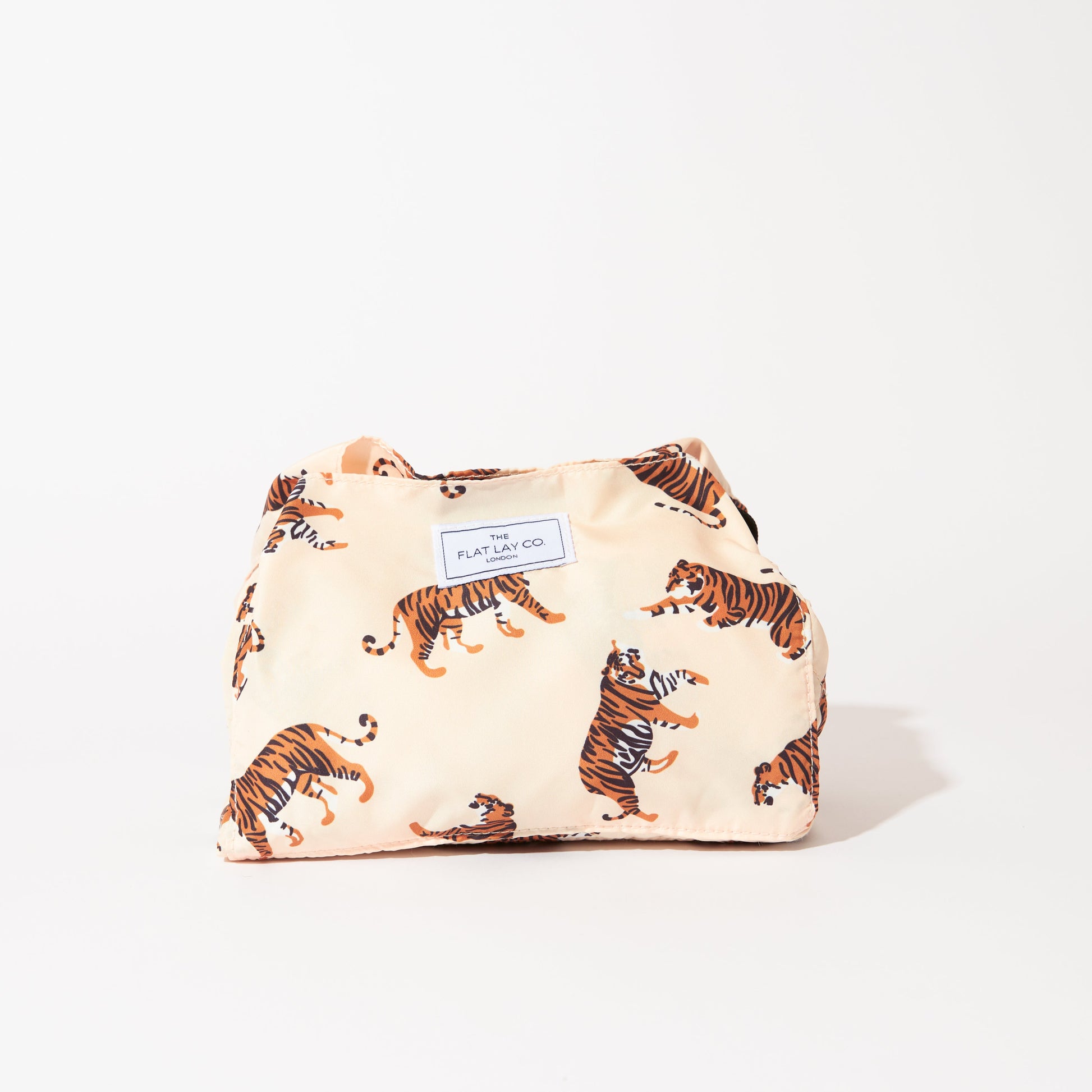 The Flat Lay Co. XXL Drawstring Makeup Bag In Beige Tigers